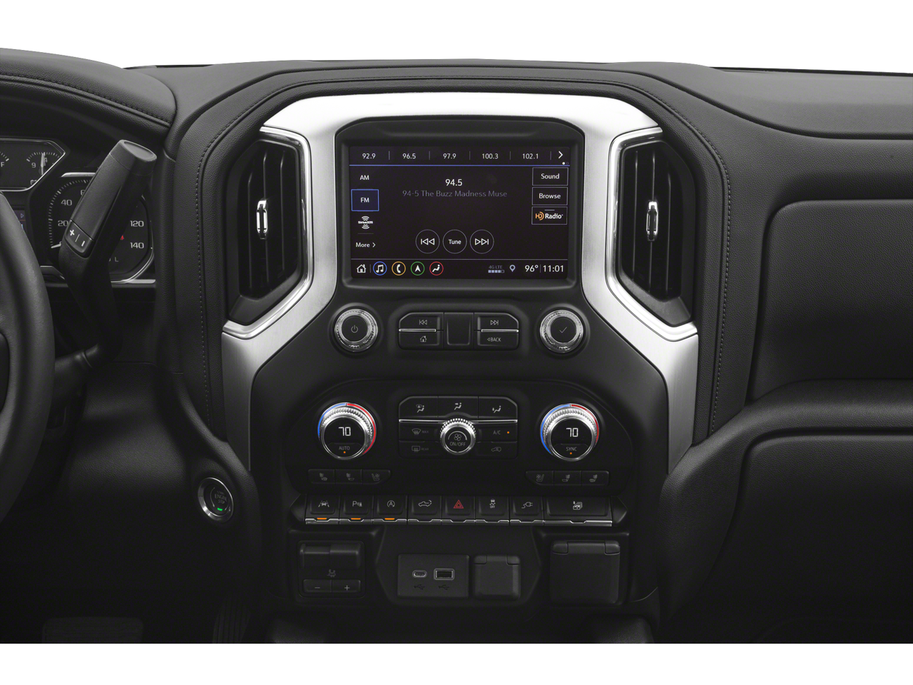 2019 GMC Sierra 1500 SLT 4WD 8-Speed Automatic EcoTec3 5.3L V8 Pacific Blue Metallic 8-Speed Automatic, 4WD, Jet Black Leather, 10-Way Power Driver Seat Adjuster w/Lumbar, 10-Way Power Passenger Seat Adjuster w/Lumbar, 12-Volt Rear Auxiliary Power Outlet, 120-Volt Bed Mounted Power Outlet, 120-Volt Instrument Panel Power Outlet, 170 Amp Alternator, 2 USB Ports, 2 USB Ports (1st Row), 20" x 9" Polished Aluminum Wheels, 3.23 Rear Axle Ratio, 4-Wheel Disc Brakes, 6 Speakers, 6-Speaker Audio System Feature, ABS brakes, Air Conditioning, All-Weather Floor Liner (LPO), Alloy wheels, AM/FM radio: SiriusXM, Apple CarPlay/Android Auto, Auto-dimming door mirrors, Auto-dimming Rear-View mirror, Automatic temperature control, Auxiliary External Transmission Oil Cooler, Brake assist, Bumpers: chrome, Chrome Assist Steps, Chrome Grille, Color-Keyed Carpeting Floor Covering, Compass, Deep-Tinted Glass, Delay-off headlights, Driver Alert Package I, Driver Alert Package II, Driver door bin, Driver Memory, Driver vanity mirror, Dual Exhaust w/Premium Tips, Dual front impact airbags, Dual front side impact airbags, Electric Rear-Window Defogger, Electrical Lock Control Steering Column, Electronic Stability Control, Floor Mounted Console, Following Distance Indicator, Forward Collision Alert, Front 40/20/40 Split-Bench Seat, Front anti-roll bar, Front Bucket Seats, Front Center Armrest w/Storage, Front dual zone A/C, Front fog lights, Front Frame-Mounted Black Recovery Hooks, Front Pedestrian Braking, Front reading lights, Front wheel independent suspension, Fully automatic headlights, GMC 4G LTE, GMC Connected Access, HD Radio, Heated 2nd Row Outboard Seats, Heated door mirrors, Heated Driver & Front Passenger Seating, Heated front seats, Heated steering wheel, Heavy Duty Suspension, Heavy-Duty Rear Locking Differential, High-Capacity Air Filter, Hill Descent Control, Hitch Guidance, Hitch Guidance w/Hitch View, Illuminated entry, In-Vehicle Trailering App, Integrated Trailer Brake Controller, IntelliBeam Automatic High Beam On/Off, Keyless Open & Start, Lane Change Alert w/Side Blind Zone Alert, Lane Keep Assist w/Lane Departure Warning, LED Cargo Area Lighting, Low Speed Forward Automatic Braking, Low tire pressure warning, Manual Tilt-Wheel & Telescoping Steering Column, Memory seat, Occupant sensing airbag, Off-Road Suspension, OnStar & GMC Connected Services Capable, Outside temperature display, Overhead airbag, Overhead console, Panic alarm, Passenger door bin, Passenger vanity mirror, Perforated Leather-Appointed Seat Trim, Perimeter Lighting, Power Door Locks, Power door mirrors, Power driver seat, Power Front Passenger Windows w/Express Up/Down, Power Front Windows w/Driver Express Up/Down, Power passenger seat, Power Rear Windows w/Express Down, Power Sliding Rear Window w/Rear Defogger, Power steering, Power Sunroof, Power windows, Preferred Equipment Group 4SA, Premium audio system: GMC Infotainment System, Premium Bose 7-Speaker Sound System, Radio data system, Radio: Premium GMC Infotainment Sys w/Multi-Touch, Radio: Premium GMC Infotainment Sys w/Navigation, Rear Cross Traffic Alert, Rear Dual USB Charging-Only Ports, Rear reading lights, Rear seat center armrest, Rear step bumper, Rear Wheelhouse Liners, Rear window defroster, Remote keyless entry, Remote Vehicle Starter System, Safety Alert Seat, Security system, SiriusXM Radio, SLT Convenience Package, SLT Preferred Package, SLT Premium Plus Package, Spray-On Pickup Bed Liner w/GMC Logo
