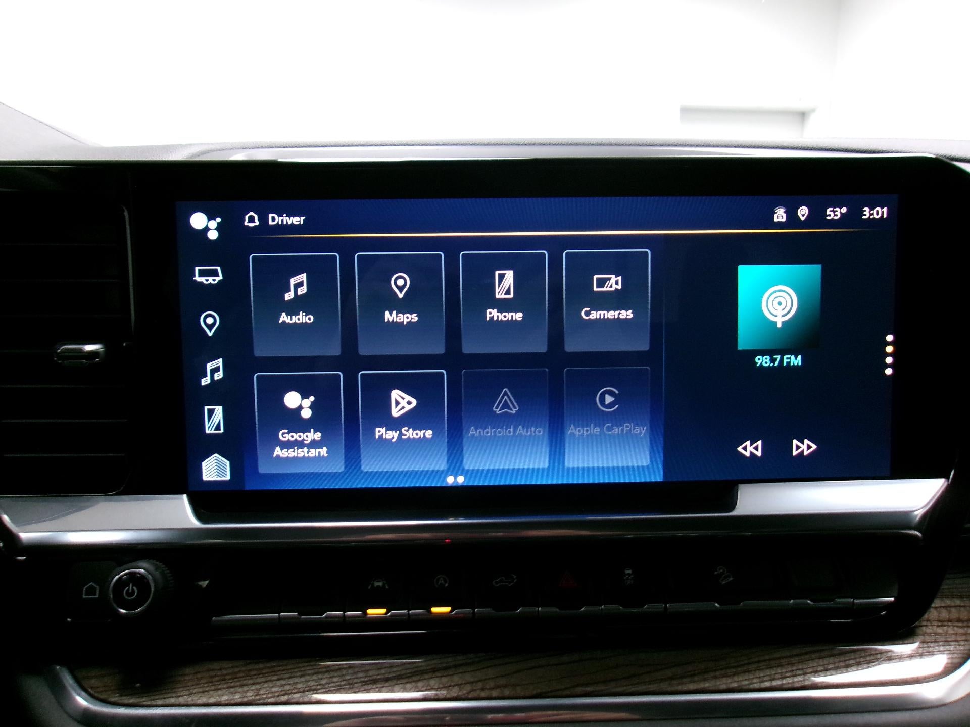 - 13.4" diagonal Chevrolet Infotainment 3 Premium System with Google built-in, includes multi-touch display, AM/FM/SiriusXM1 radio capable