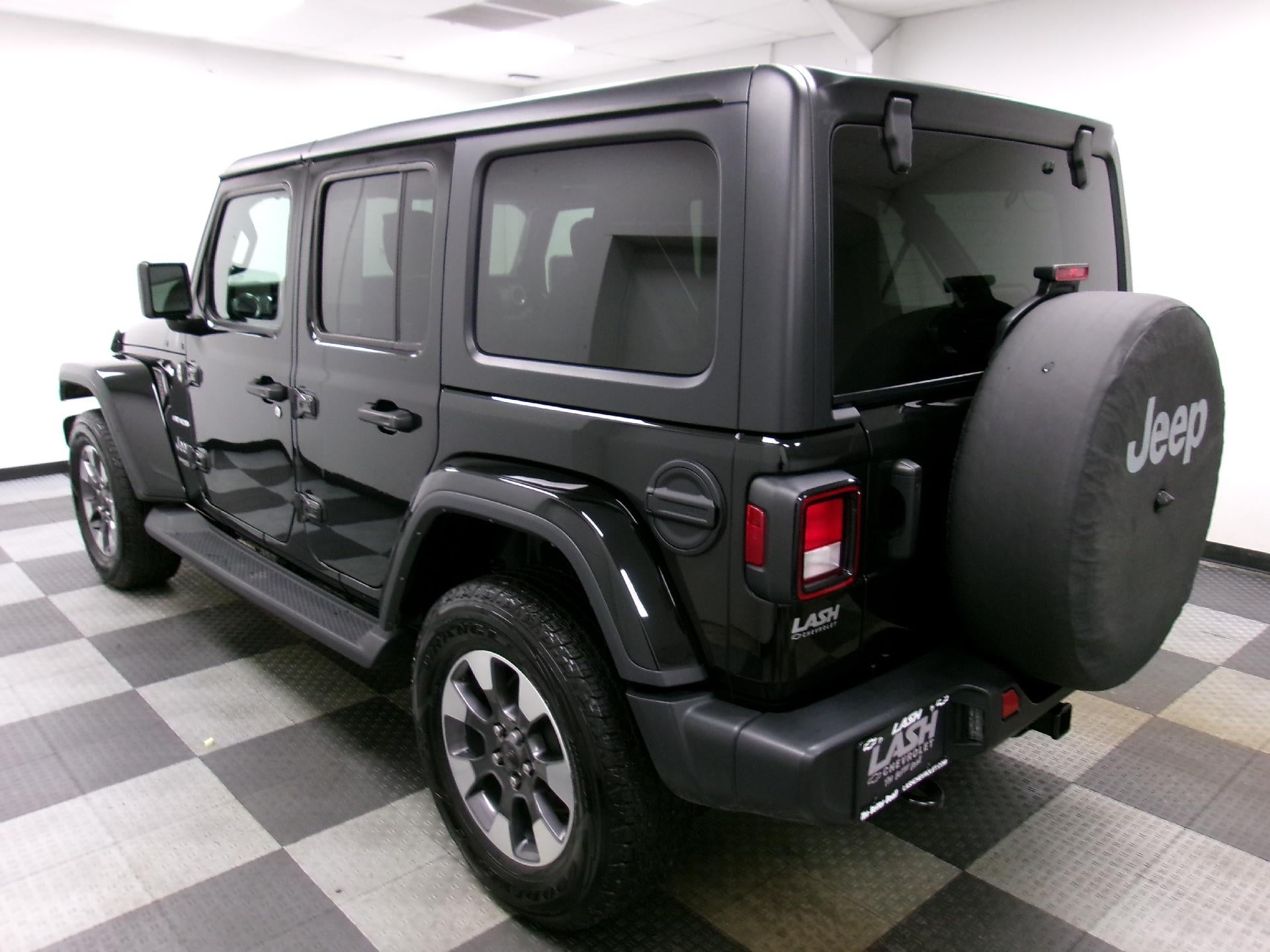 2022 Jeep Wrangler Unlimited Sahara 4WD 8-Speed Automatic 3.6L V6 24V VVT Black Clearcoat 110 MPH Vehicle Max Speed Calibration, 3.45 Rear Axle Ratio, 4-Wheel Disc Brakes, 9 Speakers, ABS brakes, Air Conditioning, Alloy wheels, AM/FM radio: SiriusXM, Anti-Spin Differential Rear Axle, Apple CarPlay/Android Auto, Auto-dimming Rear-View mirror, Automatic temperature control, Aux Battery, Black 3-Piece Hard Top, Brake assist, Cloth Low-Back Bucket Seats, Compass, Corning Gorilla Glass, Delay-off headlights, Driver door bin, Driver vanity mirror, Dual front impact airbags, Dual front side impact airbags, Electronic Stability Control, Emergency communication system: SiriusXM Guardian, Engine Oil Cooler, Freedom Panel Storage Bag, Front anti-roll bar, Front Bucket Seats, Front Center Armrest w/Storage, Front dual zone A/C, Front fog lights, Front reading lights, Fully automatic headlights, Garage door transmitter, Heated door mirrors, Heavy Duty Suspension w/Gas Shocks, Illuminated entry, Integrated roll-over protection, Leather steering wheel, Low tire pressure warning, Navigation System, No Soft Top, Non-Lock Fuel Cap w/o Discriminator, Occupant sensing airbag, Outside temperature display, Panic alarm, ParkView Rear Back-Up Camera, Passenger door bin, Passenger vanity mirror, Power door mirrors, Power steering, Power windows, Quick Order Package 24G (DISC), Radio data system, Radio: Uconnect 4C Nav w/8.4" Display, Rear anti-roll bar, Rear reading lights, Rear Window Defroster, Rear Window Wiper/Washer, Remote keyless entry, Security system, Speed control, Split folding rear seat, Steering wheel mounted audio controls, Stop-Start Dual Battery System, Tachometer, Telescoping steering wheel, Tilt steering wheel, Traction control, Trip computer, Variably intermittent wipers, Voltmeter, Wheels: 18" x 7.5" Polished w/Gray Spokes, Wheels: 18" x 7.5" Tech Gray Machined Face.